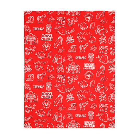 'Horse Market' Signature Adult Graphic Pattern - Red Novelty Microfiber Blanket
