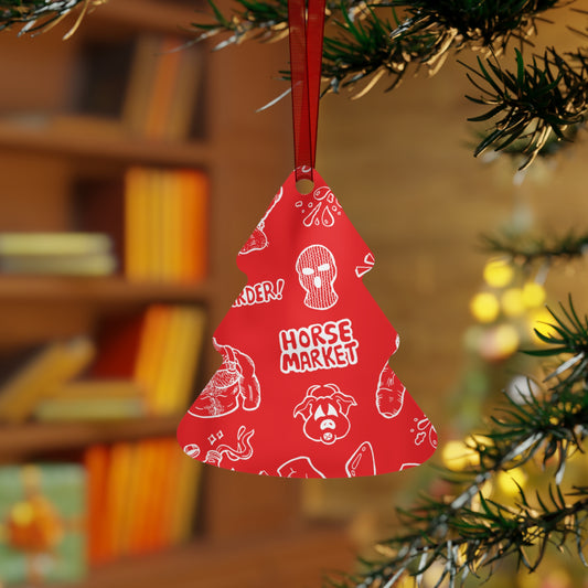 Metal Ornament — Red Horse Market Pattern Bell Ornament (Novelty Graphic, 'Horse Market' Design)