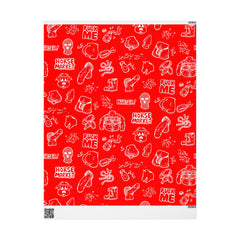 Edgy Red Novelty Wrapping Paper Sheet — 'Horse Market' Graphic Pattern with Bold Sayings - 20" x 28" / Single sheet / Satin |